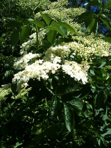 elderflowersI’ve been waiting for the Elderflowers to show themselves, and with all the sunshine there’s been lately there’s been a magnificent local display of the simple white flowers.