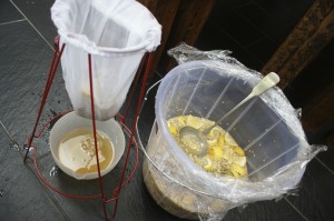 jelly-strainer from Lakeland which did a grand job of straining out all the nasties. I did a quick test with a fine sieve to see how it would compare and all kinds of rubbish came through.