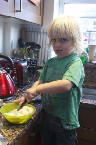 I attempted to involve Arlo in the cookery proceedings… I think his expression in this photo pretty much says it all really – mooooooooodychops!