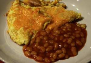 Fluffy omelette and beans