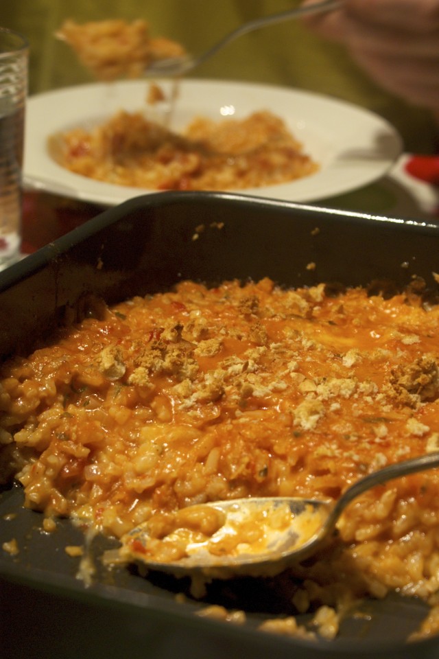Baked risotto with tomato and mozzarella – from Fresh & Green by Aldo Zilli