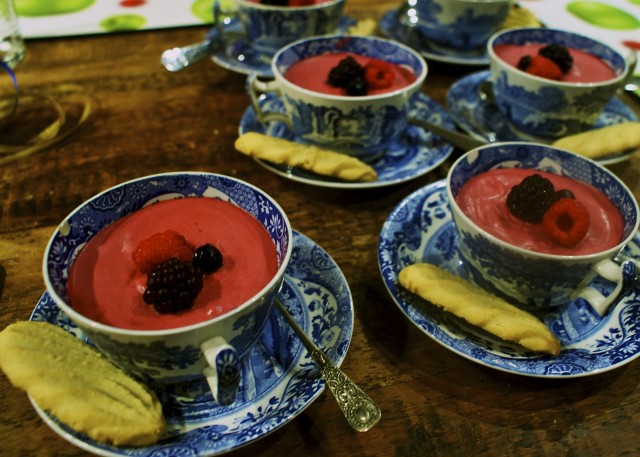 3. Pour into teacups or wine glasses and pop in the fridge until you’re ready for dessert. Garnish with a few berries on top and serve with a shortbread finger or two.