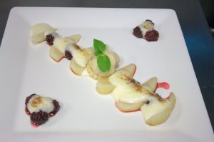 We were let loose on the pans when we were all paired up to cook a DIVINE dessert of pear and blackberry gratin in Martin’s professional kitchen. There were many components of the dish to make and lots of processes to get our heads around, but the results were definitely worthwhile.