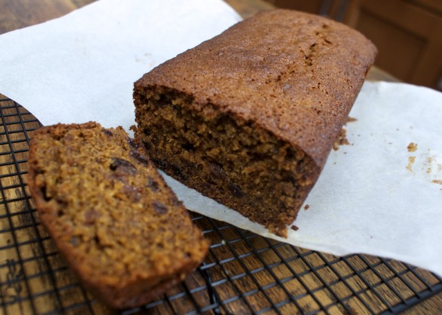 What I especially like about this recipe is the use of melted butter and dark brown sugar – it results in a moist and treacley sponge that is super delicious eaten when it’s still warm. It’d also be fabulous with a big splodge of custard on it. And if it lasts that long you could freeze slices down and put them in the kids’ lunchboxes.