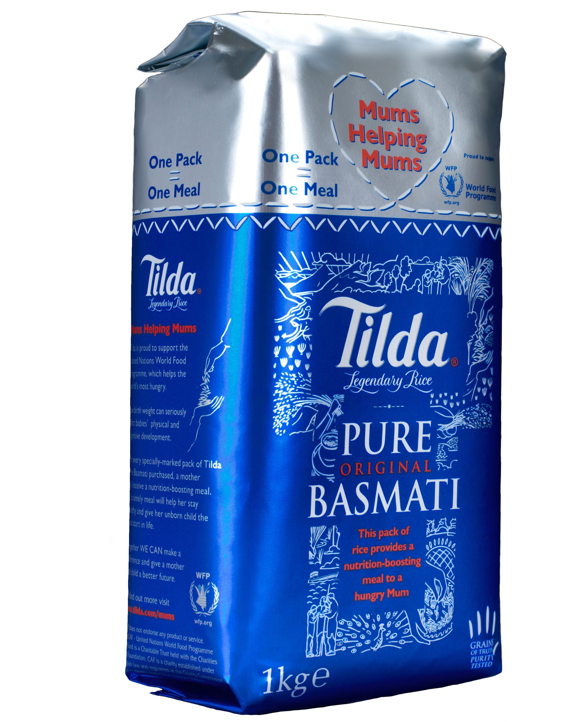 The Tilda Pure Basmati Mums Helping Mums pack is available in all major supermarkets priced from £4.49