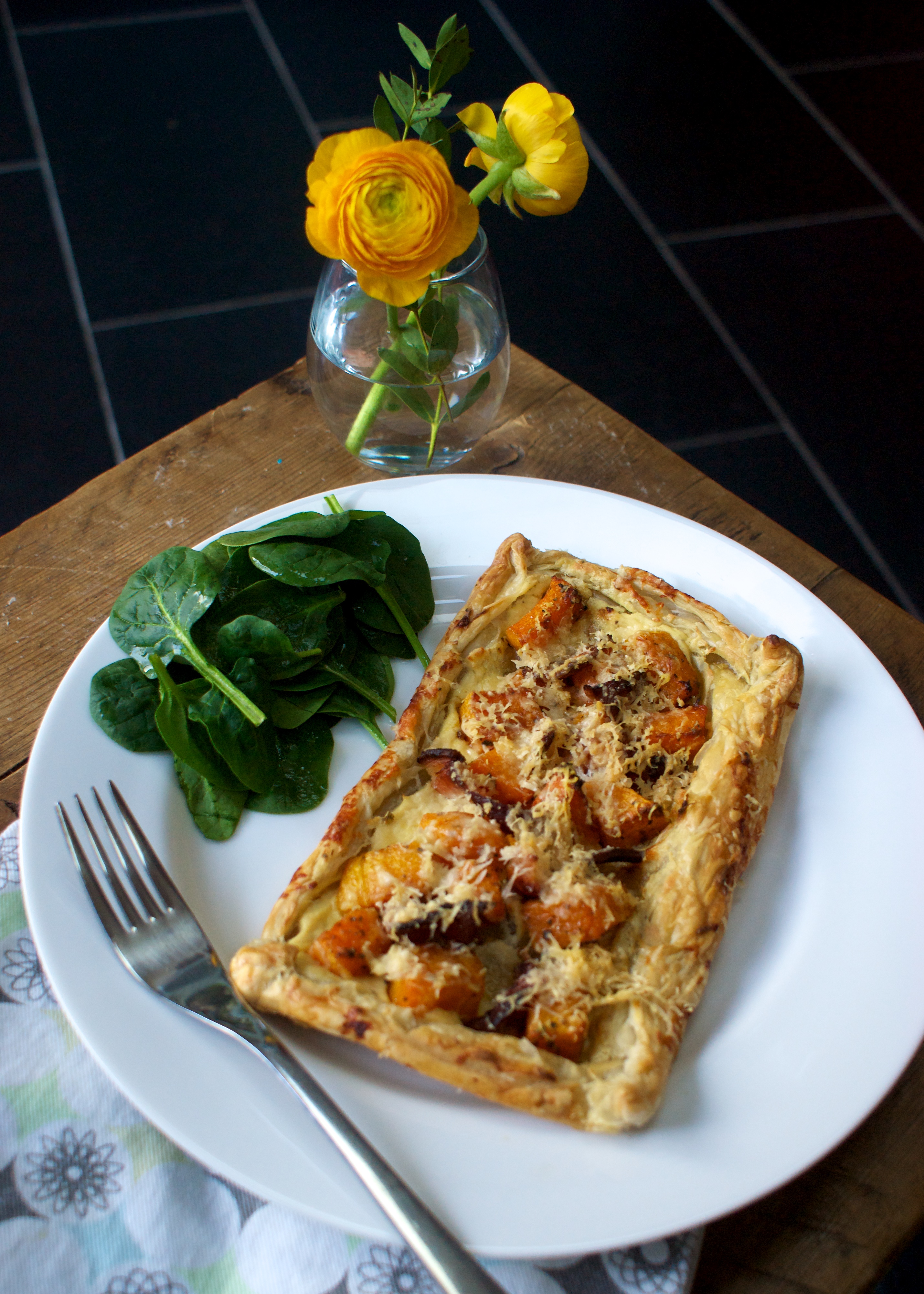 I came up with a delicious set of four puff pastry tarts topped with roasted butternut squash, crispy bacon and nutty parmesan – a really great flavour combination.