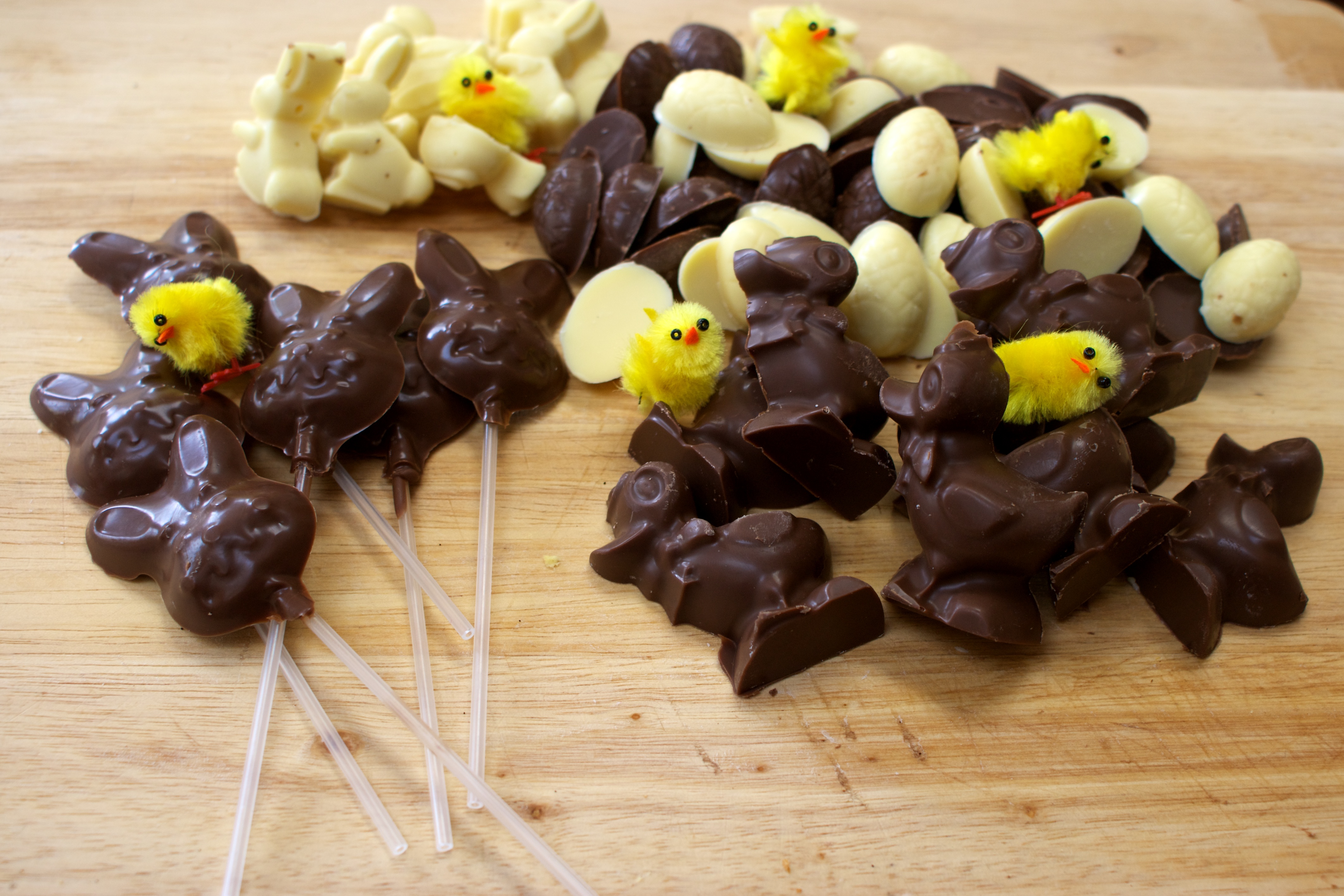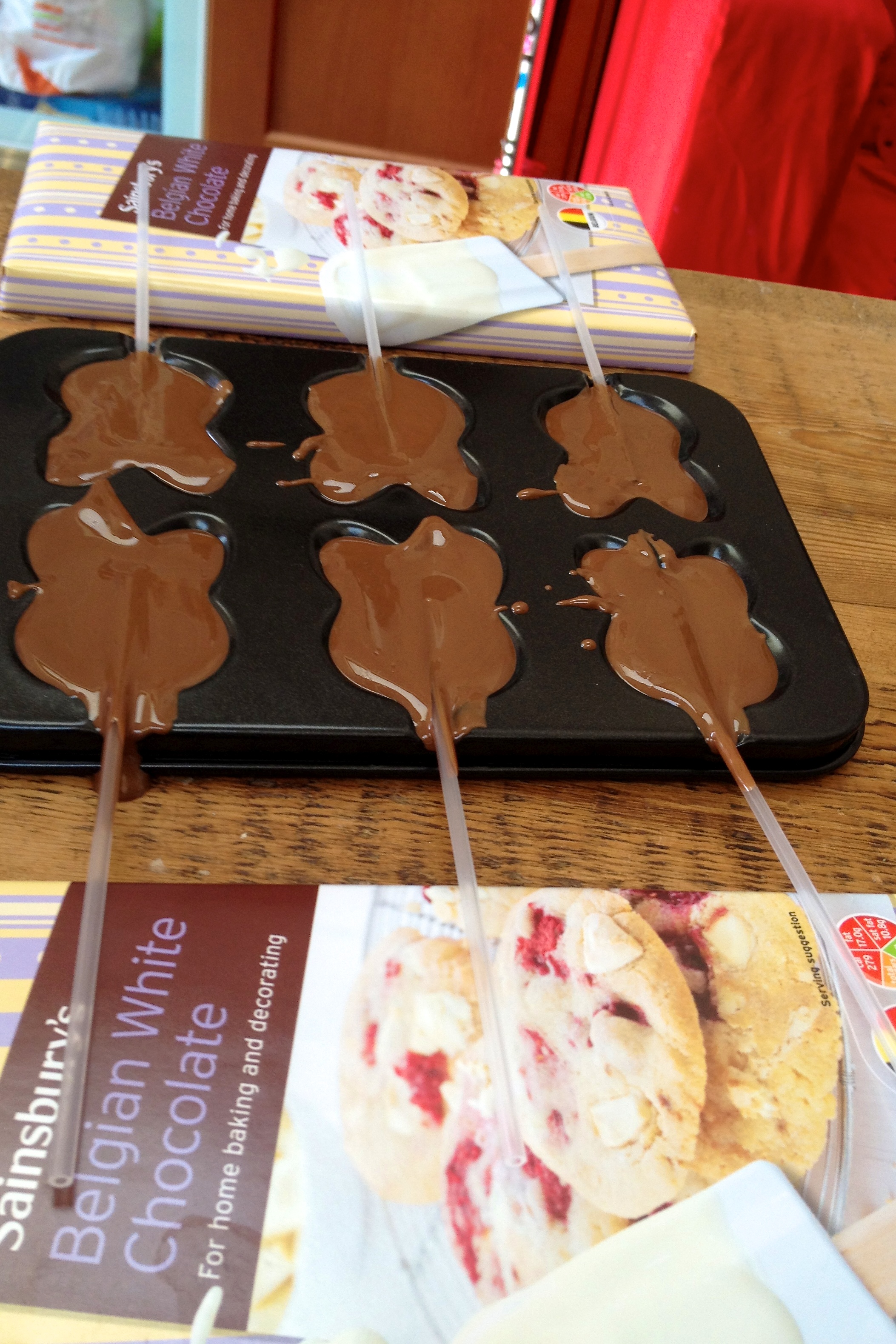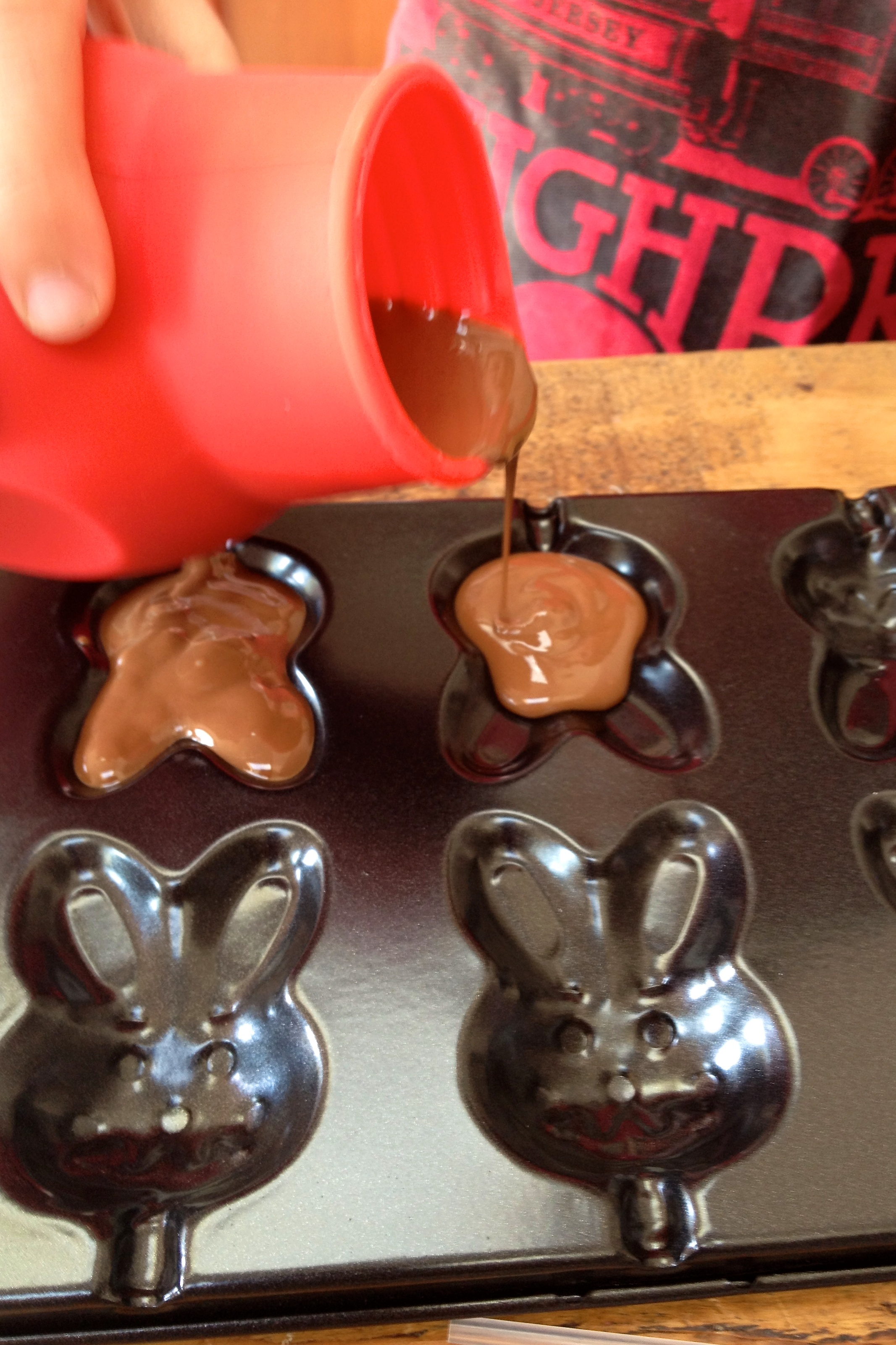 The bunny lolly moulds (£3.49) are really fun, but I did need to prop up the sticks to stop them from flopping out. We also used some silicone moulds of different animal shapes – I think the silicone are the easiest to turn out, but the smaller shapes work better than the larger ones as they don’t take as much chocolate to fill.