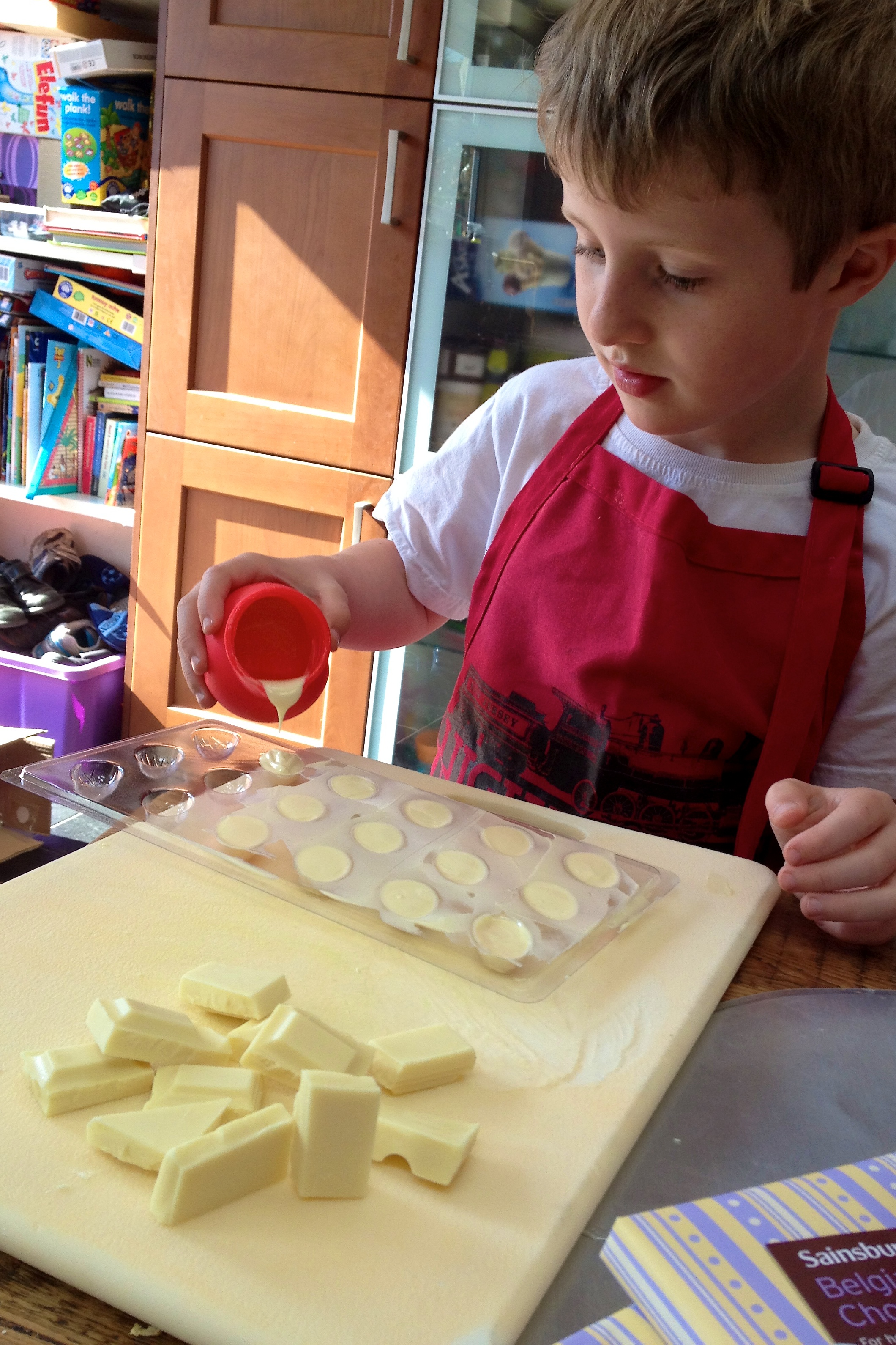 Those fine people at Lakeland sent me a box of Easter themed chocolate moulds and kit so Sam and I took advantage of the teachers’ strike, rolled up our sleeves and got stuck in.
