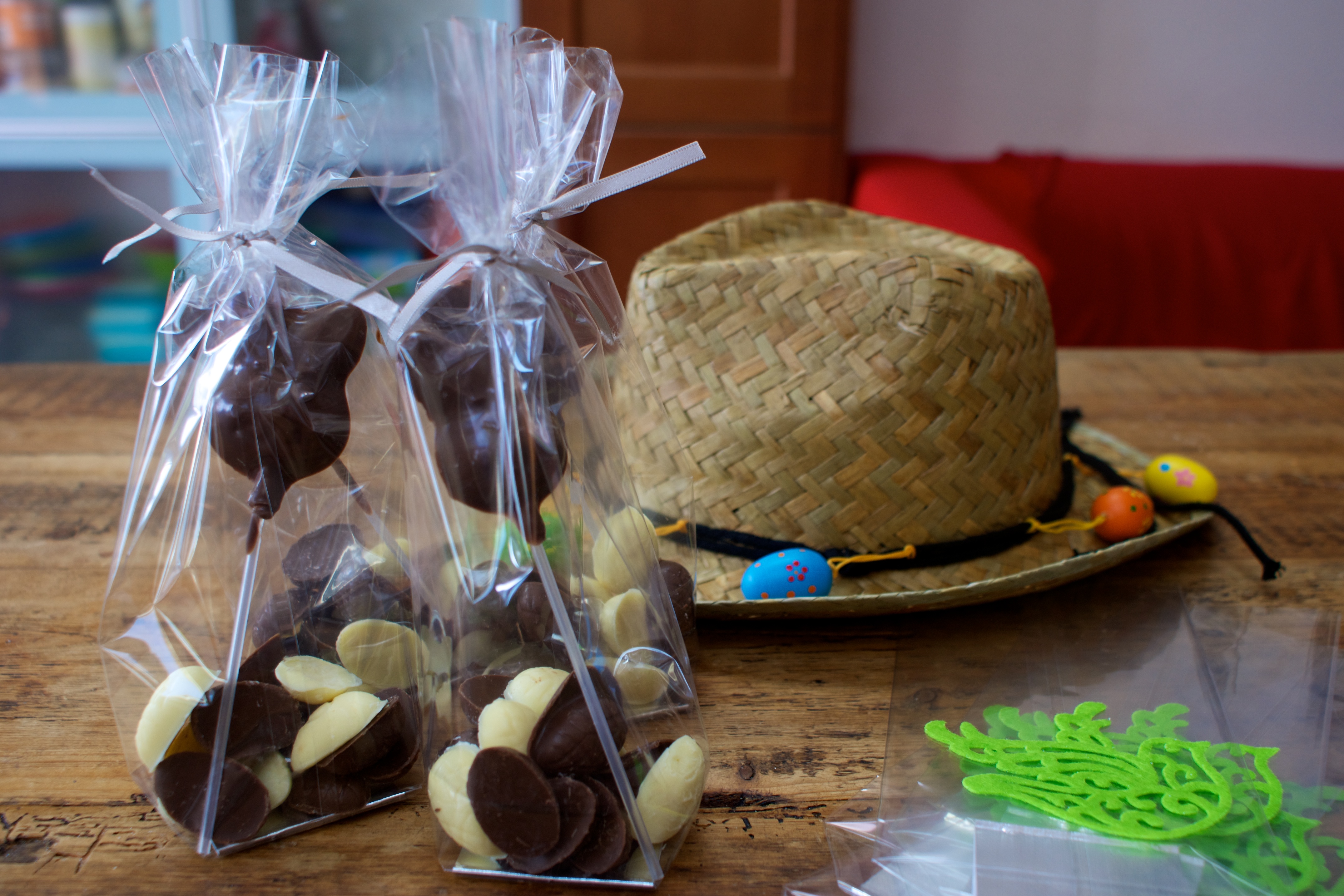 To package the chocolate up I bought some gift bags from Sainsbury’s which come with lovely silver ribbon. As well as gifts for friends, Arlo has his Easter Bonnet parade this week and we all have to take goodies for the coffee morning. I thought a little bag of home-made choccies would work well.