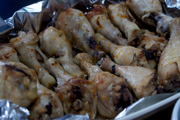 I used some of the meat from the box that Keevil and Keevil sent me – baked a batch of sausages drizzled with honey, and a tray of chicken drumsticks with olive oil, thyme, orange zest and soy sauce.