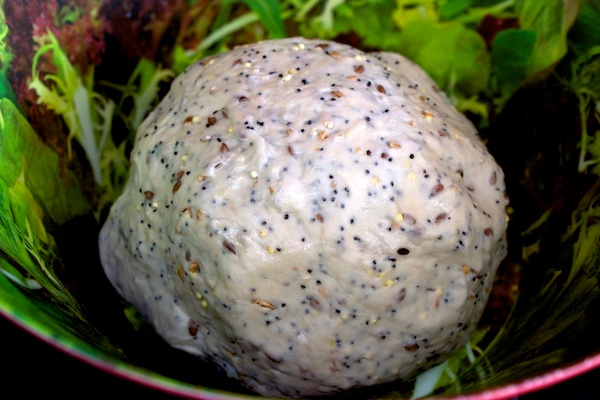 3. Form the dough into a smooth ball and then pop into a large oiled bowl, cover with oiled cling film and leave to rise for 1 hour in a warm place.