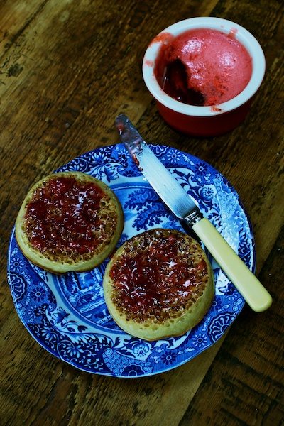 I saved my ramekin of frothy residue (I don’t really want to call it scum as it makes it sound nasty, when in fact it’s glorious) for breakfast when I slathered it onto hot buttered crumpets…