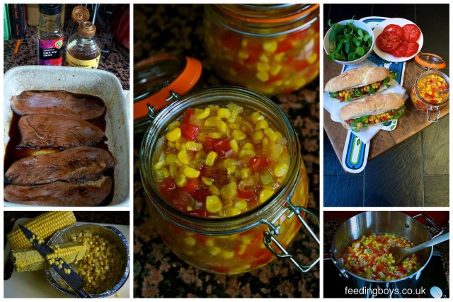 Making turkey and bacon subs with sweetcorn relish