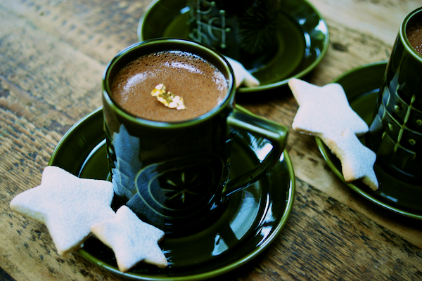Chocolate cinnamon pots with almond star cookies