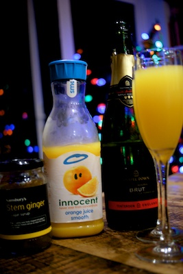 Those friendly folks at Innocent sent me a bottle of Chapel Down’s equisite sprarkling wine, along with a couple of bottles of their Innocent orange juice for me to come up with my own take on the Bucks Fizz. Well to give it a festive flourish I added a dash of ginger syrup from an old jar of stem ginger that had been lurking at the back of my fridge – orange, ginger and fizz – merry Christmas I say!