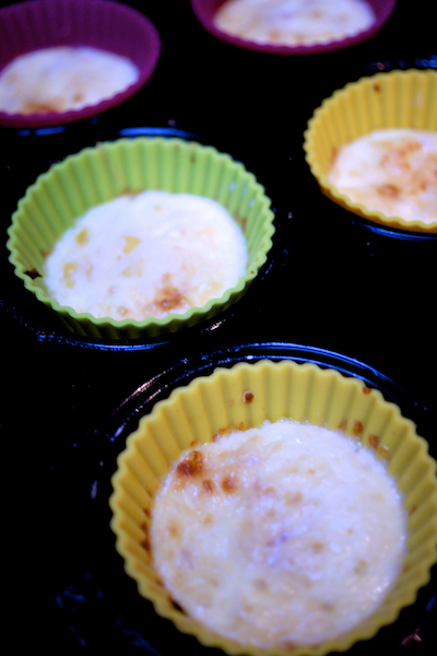 5. Spoon little heaps of the ham mixture into the bottom of each pastry case. Pour over enough egg mixture to fill three quarters of the way to the top.