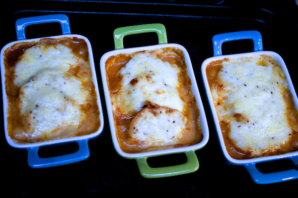 6. Heat the oven to 200C/180C fan/gas 6. Put the pies on a baking sheet and bake in the oven for 20-25 minutes until golden and bubbling. Allow to cool a little before serving to children so they don’t burn themselves.