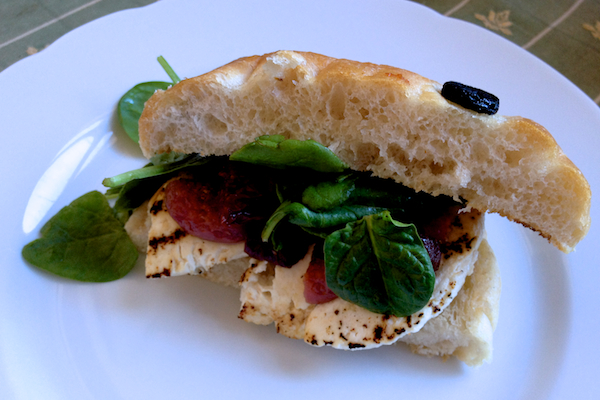 You are instantly rewarded with a very fresh tasting firm cheese – we couldn’t believe how simple it was. So naturally we had to slice it up and fry it, and stuff it into an indulgent sandwich with salami, sun-dried tomatoes and spinach on olive bread – unbelievably tasty.