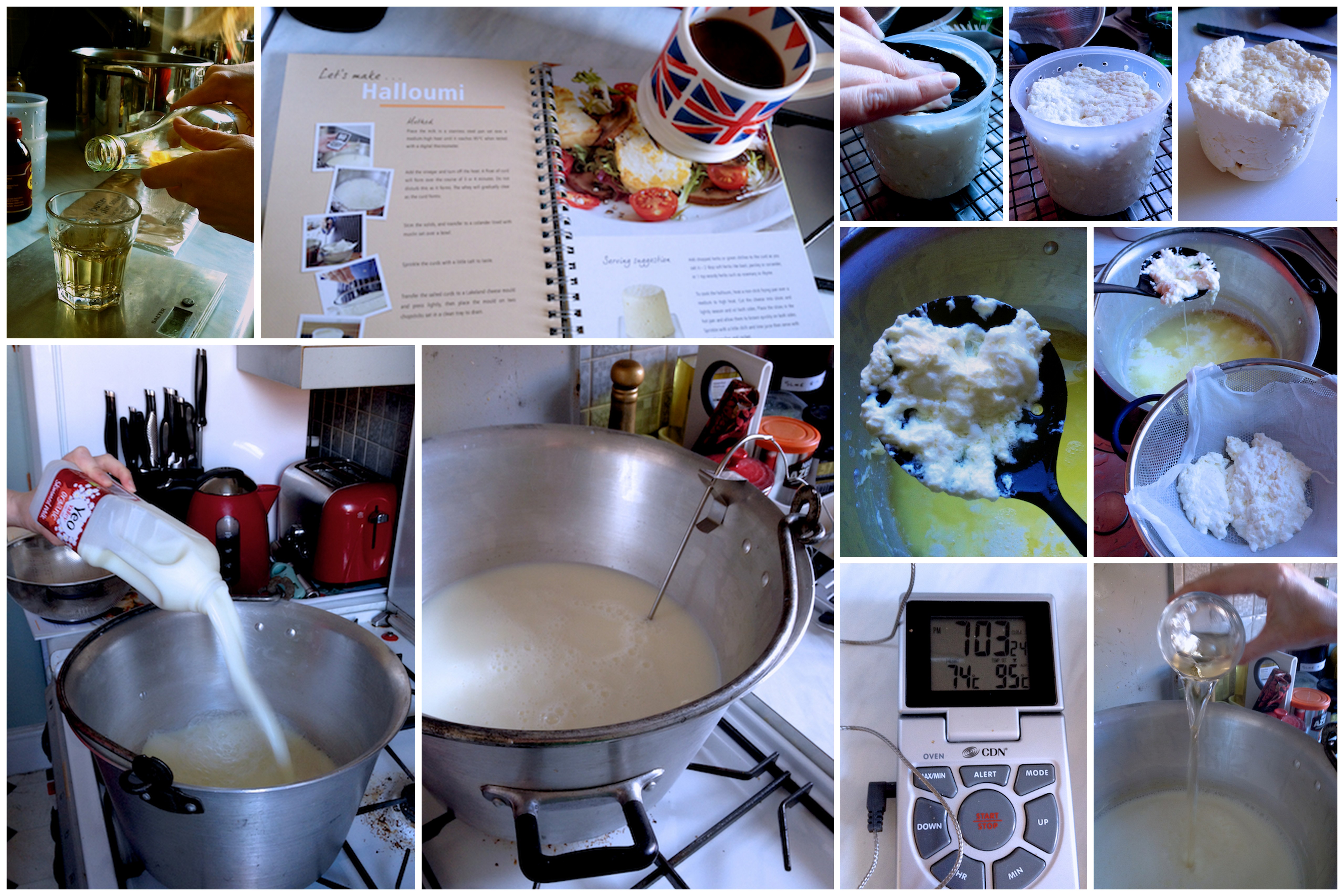 .I have made soft cheeses before using a saucepan and a cotton hankerchief to strain it through in the absence of muslin (very slow and I have muslin now) and no thermometer so you can dabble with smaller amounts. But I’m really intrigued by the Halloumi, we always have a block in the fridge and I had not realised how ridiculously easy it would be to make. Time to invest in a thermometer?