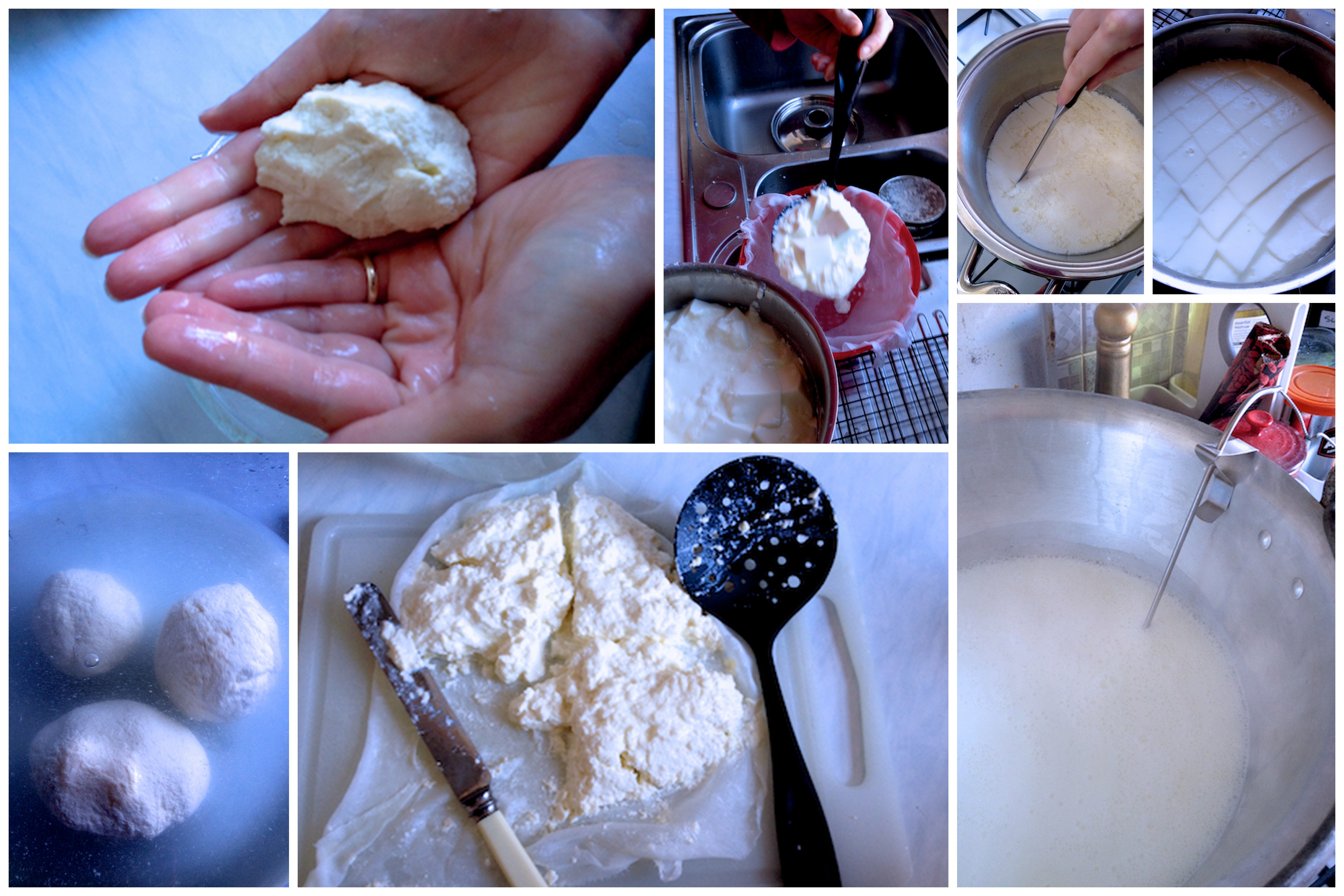 Then you have to heat portions of the curds until the stringy cheese gradually forms enough for you to be able to form them into balls in your hands. You then plop them into icy water to set. Hugely satisfying!