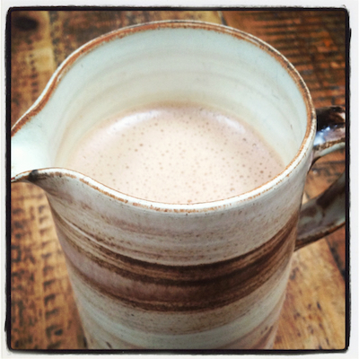 You really can’t beat putting your numb hands around a warm mug of hot chocolate when you’ve come in from running the boys around the park in the biting wind. This version uses real chocolate so it is a bit extravagant – but as we’ve all been feeling run-down and in need of comfort we feel fully justified.